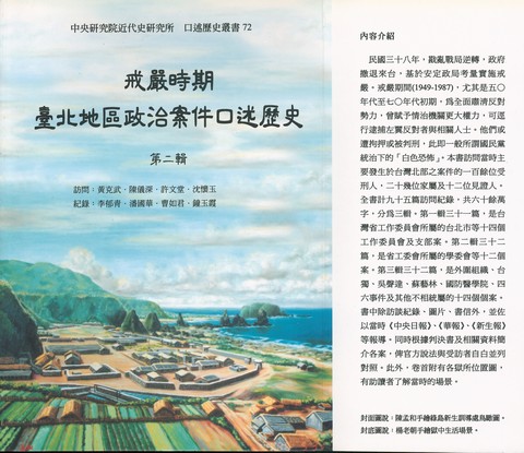 民國三十八年,戡亂戰局逆轉,政府撤退來台,基於安定政局考量實施戒嚴。戒嚴期間(1949-1987),尤其是五○年代至七○年代初期,為全面肅清反對勢力,曾賦予情治機關更大權力,可逕行逮捕左翼反對者與相關人士。他們或遭拘押或被判刑,此即一般所謂國民黨統治下的「白色恐怖」。本書訪問當時主要發生於台灣北部之案件的一百餘位受刑人、二十幾位家屬及十二位見證人。全書計九十五篇訪問紀錄,共六十餘萬字,分為三輯。第一輯三十一篇,是台灣省工作委員會所屬的台北市等十四個工作委員會及支部案。第二輯三十二篇,是省工委會所屬的學委會等十二個案。第三輯三十二篇,是外圍組織、台獨、吳聲達、蘇藝林、國防醫學院、四六事件及其他不相統屬的十四個個案。書中除訪談紀錄、圖片、書信外,並佐以當時《中央日報》、《華報》、《新生報》等報導。同時根據判決書及相關資料簡介各案,俾官方說法與受訪者自白並互對照。此外,卷首附有各獄所位置圖,有助讀者了解當時的場景。